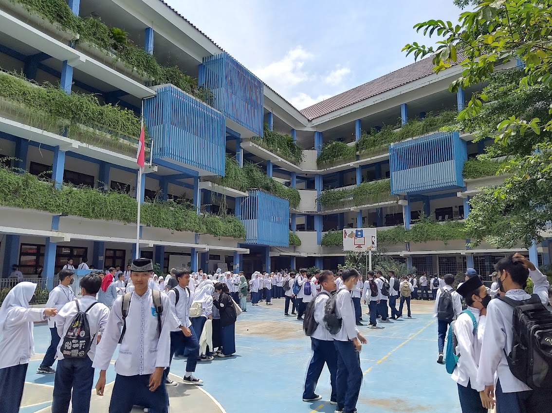 Keceriaan Siswa-Siswi SMP Negeri 39 Jakarta Kabupaten Jakarta Pusat Usai Mengikuti Gerak Jalan Indah dalam Memeriahkan Hari Nasional