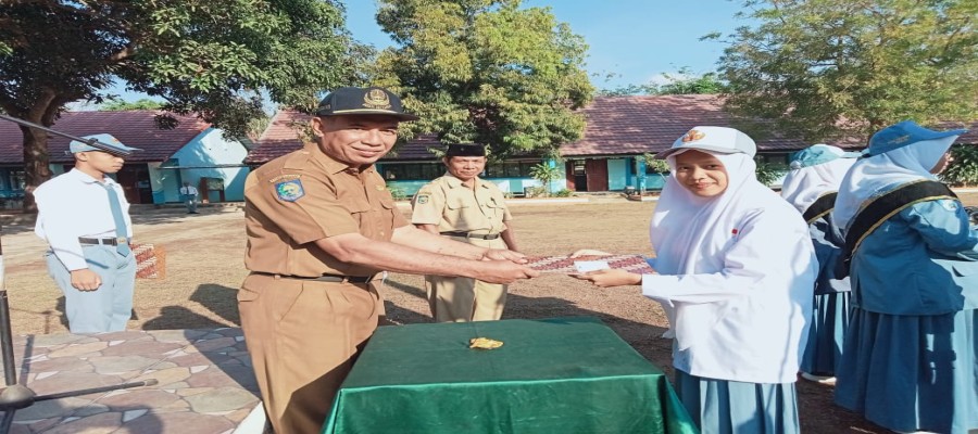 Penyerahan Piala juara lomba gerak jalan oleh regu PA dan PI kepada sekolah .Agustus 2023